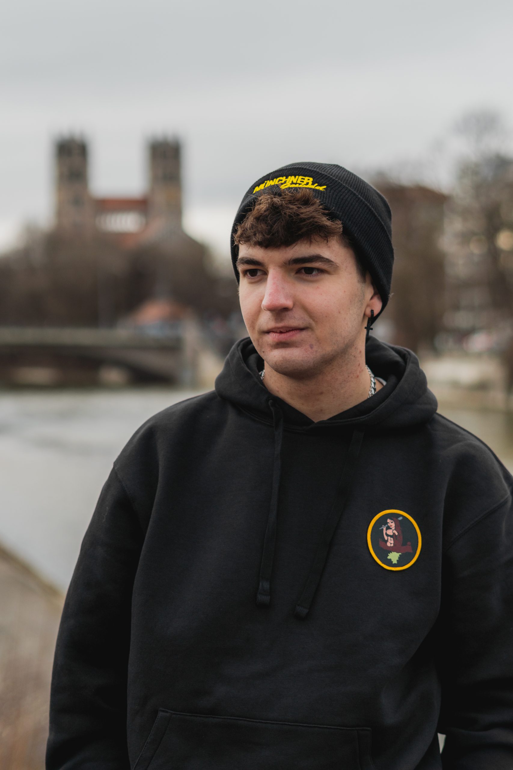 • Backprint: “Münchner Gesindel”-Logo (Siebdruck)